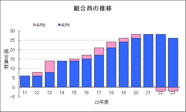 平成11年に組合が発足してから平成23年4月1日までの組合員数推移です。